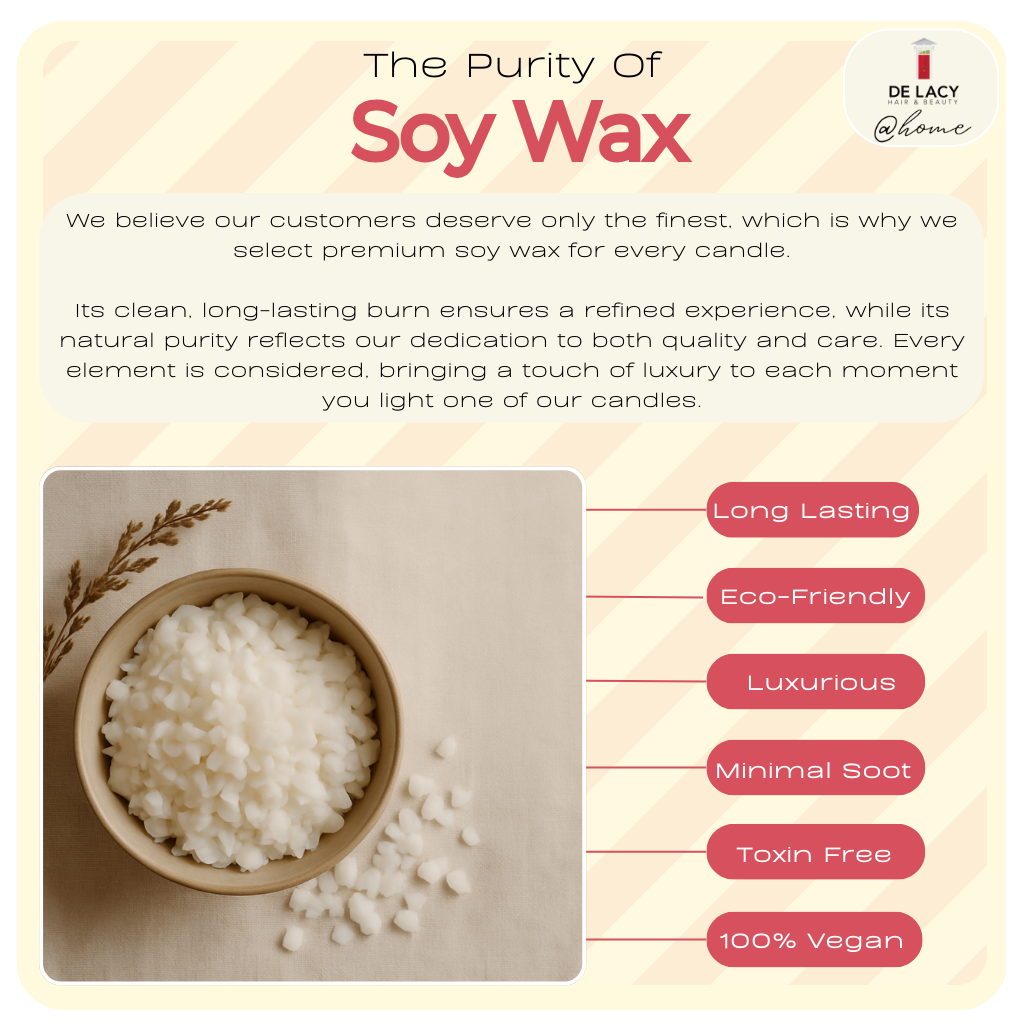 Premium Soy Wax - Hand-poured using 100% natural soy wax for a clean, even burn that's better for your health and the environment. Our soy wax provides superior scent throw and longer burn times compared to traditional paraffin candles.