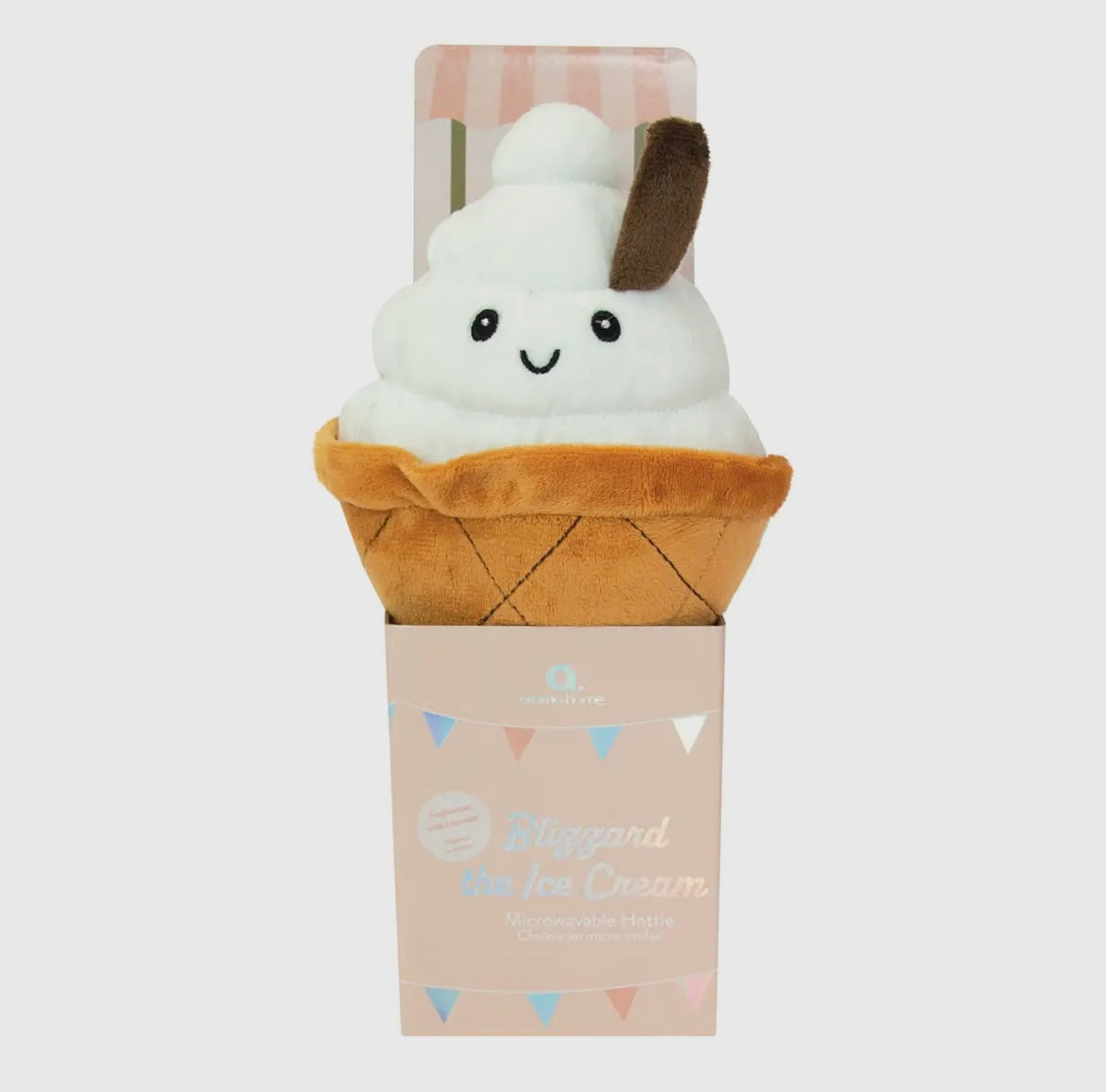 Blizzard the Ice Cream is as sweet and soft as she sounds! Cute, soft and ready to be scooped up! Just like our other Hotties, she has a wheat pack to warm in the microwave.